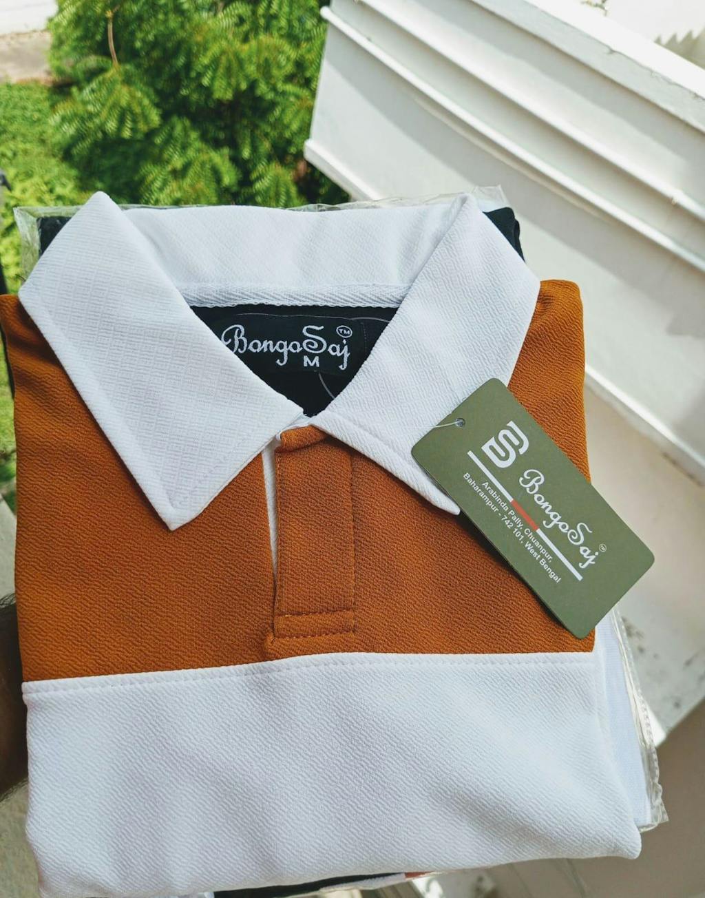 Full sleeve Collar Lycra T Shirt Golden Yellow White with Black