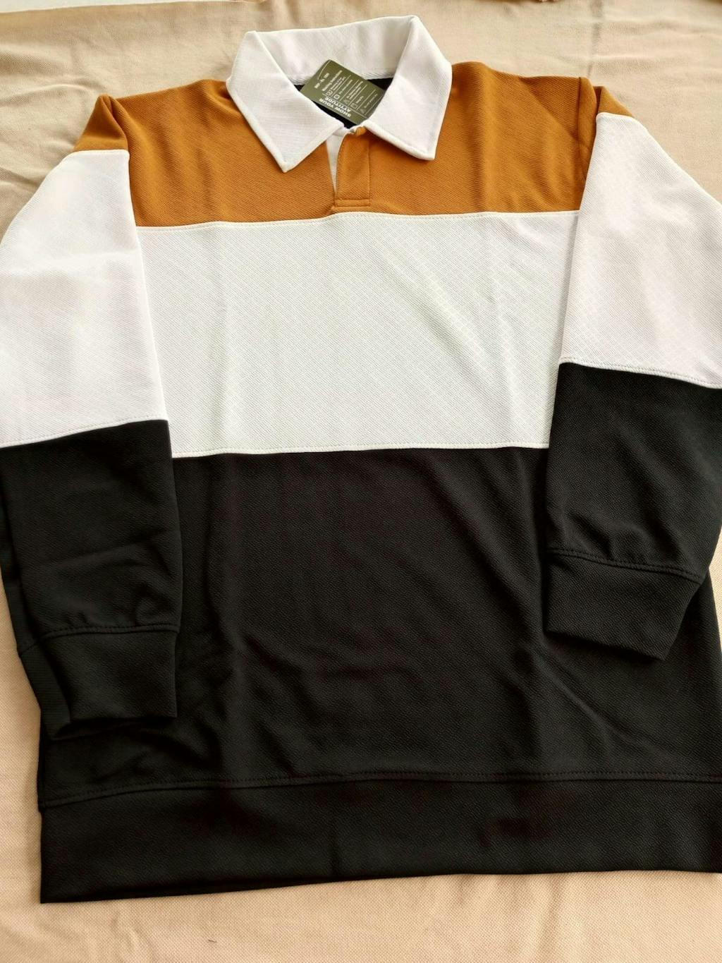 With this Lycra full-sleeve polo T-shirt, you can stay fashionable and comfy. Its contemporary design, which combines the hues Black, white, and Golden yellow, makes it ideal for informal get-togethers and athletic wear. The breathable Lycra fabric is perfect for everyday comfort since it provides flexibility and a snug fit. This polo shirt works well for both work and play, keeping you looking put together. Wear it with chinos or jeans for a simple fashion update.