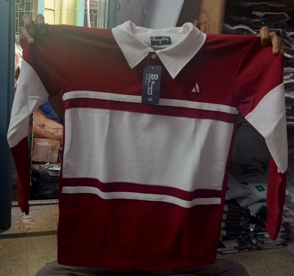 Full Sleeve Collar T-Shirt Maroon & White 2-Stripes new