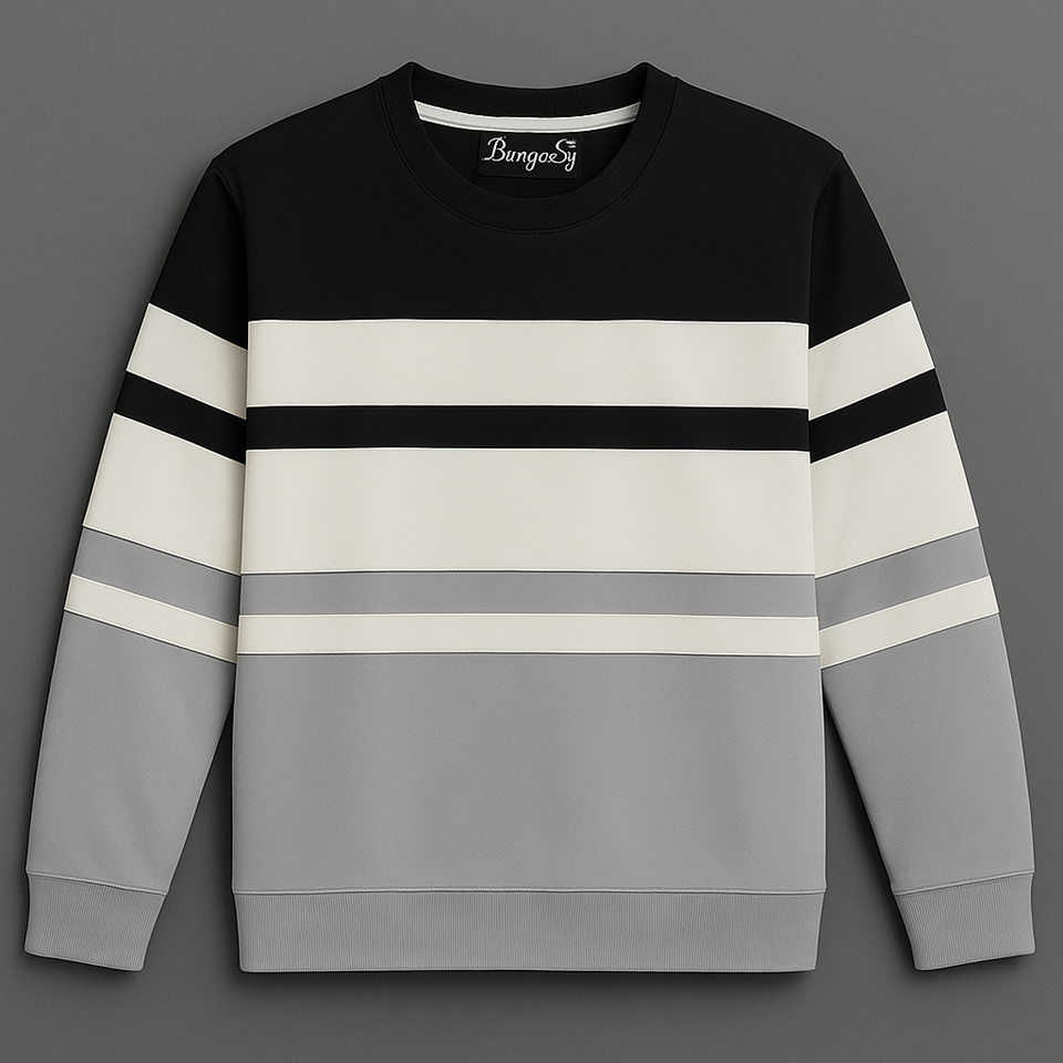 Modern Striped Design – stylish black, white, and grey combination that stands out.