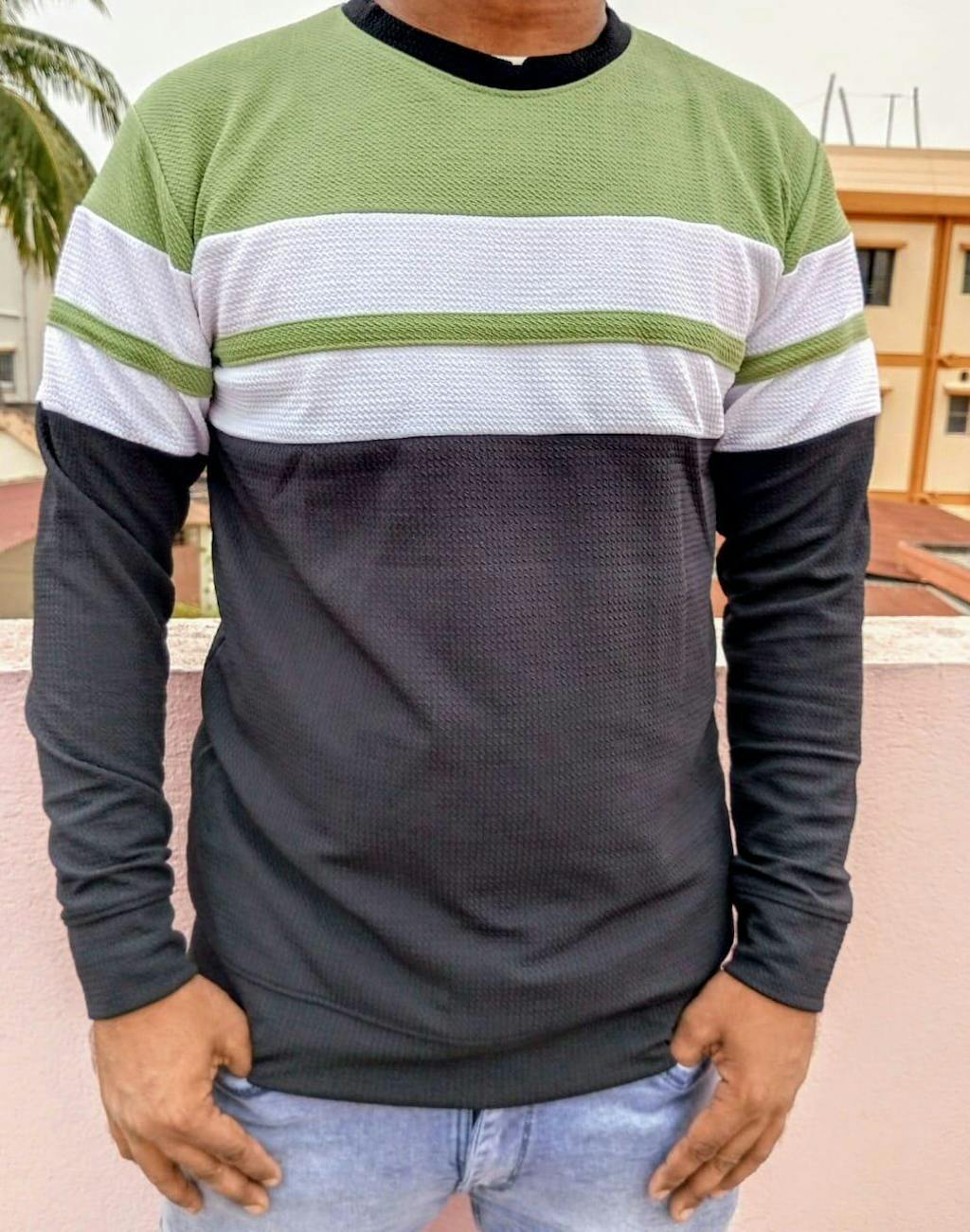 Full sleeve T-Shirt Sage Green Black & White