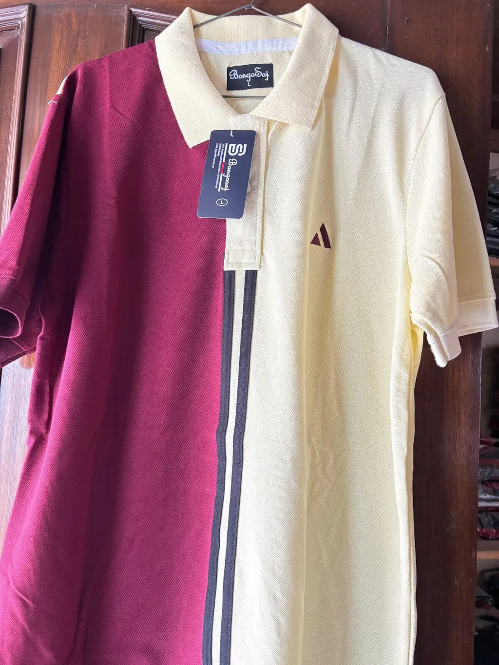 Half Maroon with Yellow stripe Polo T-Shirt - Men’s