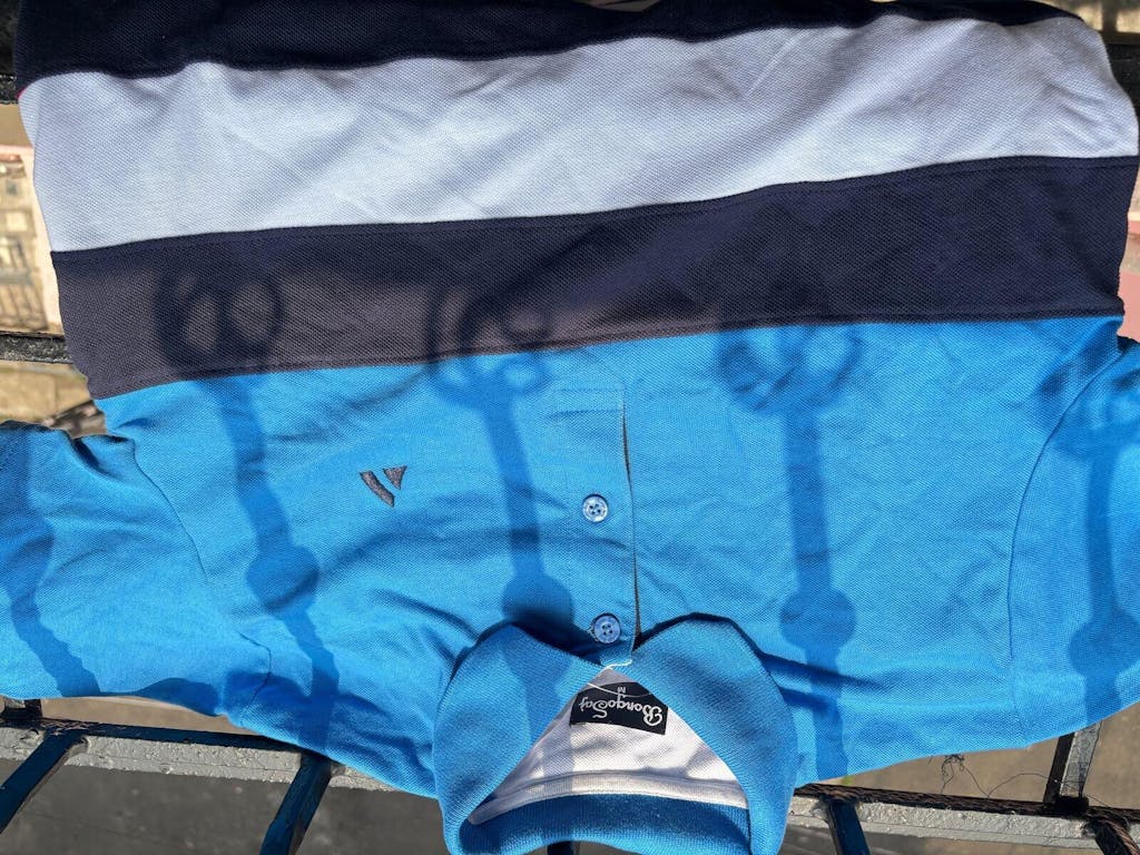 In every wardrobe should reside the Sky Blue white with Navy Blue stripe Polo T-Shirt. As great as it is with joggers, they are with jeans, this normal fit T-shirt will see you through endless casual occasions. Made from breathable 100% cotton fabric, this T-shirt will keep you feeling as cool as you look.