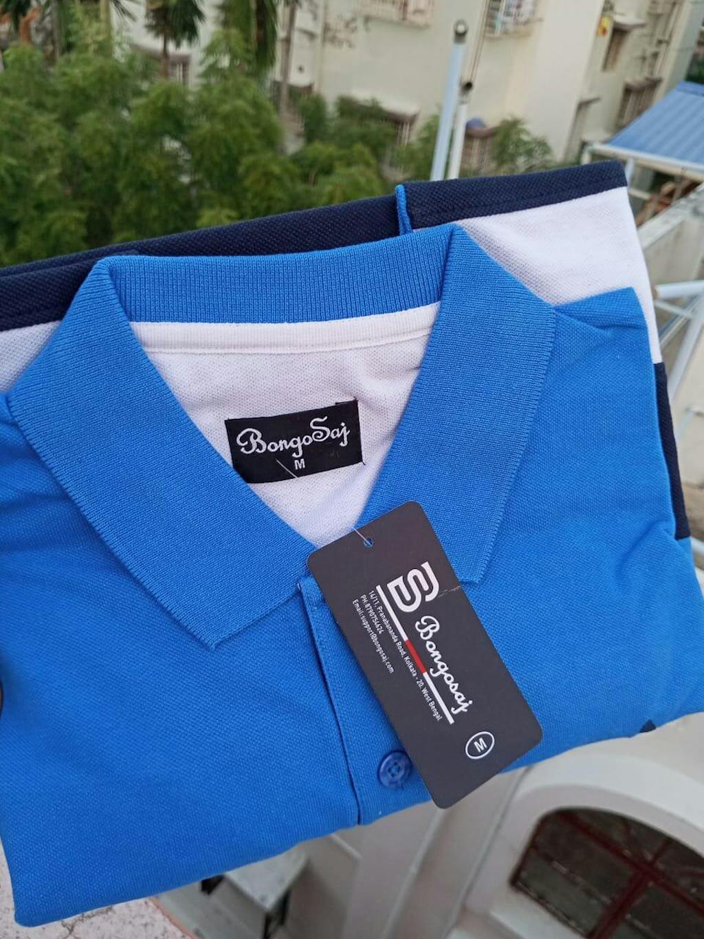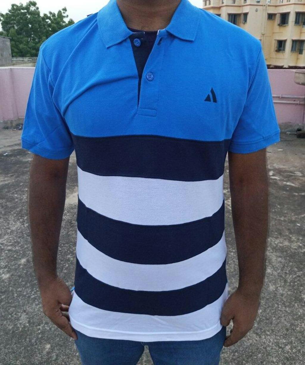 Sky Blue white with Navy Blue stripe Polo T-Shirt