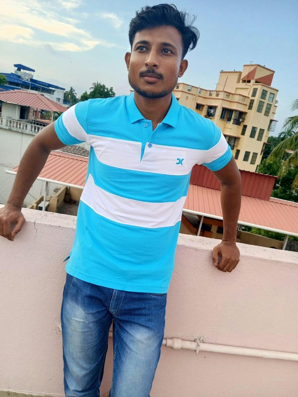 Turquoise Blue with White new Polo T-Shirt