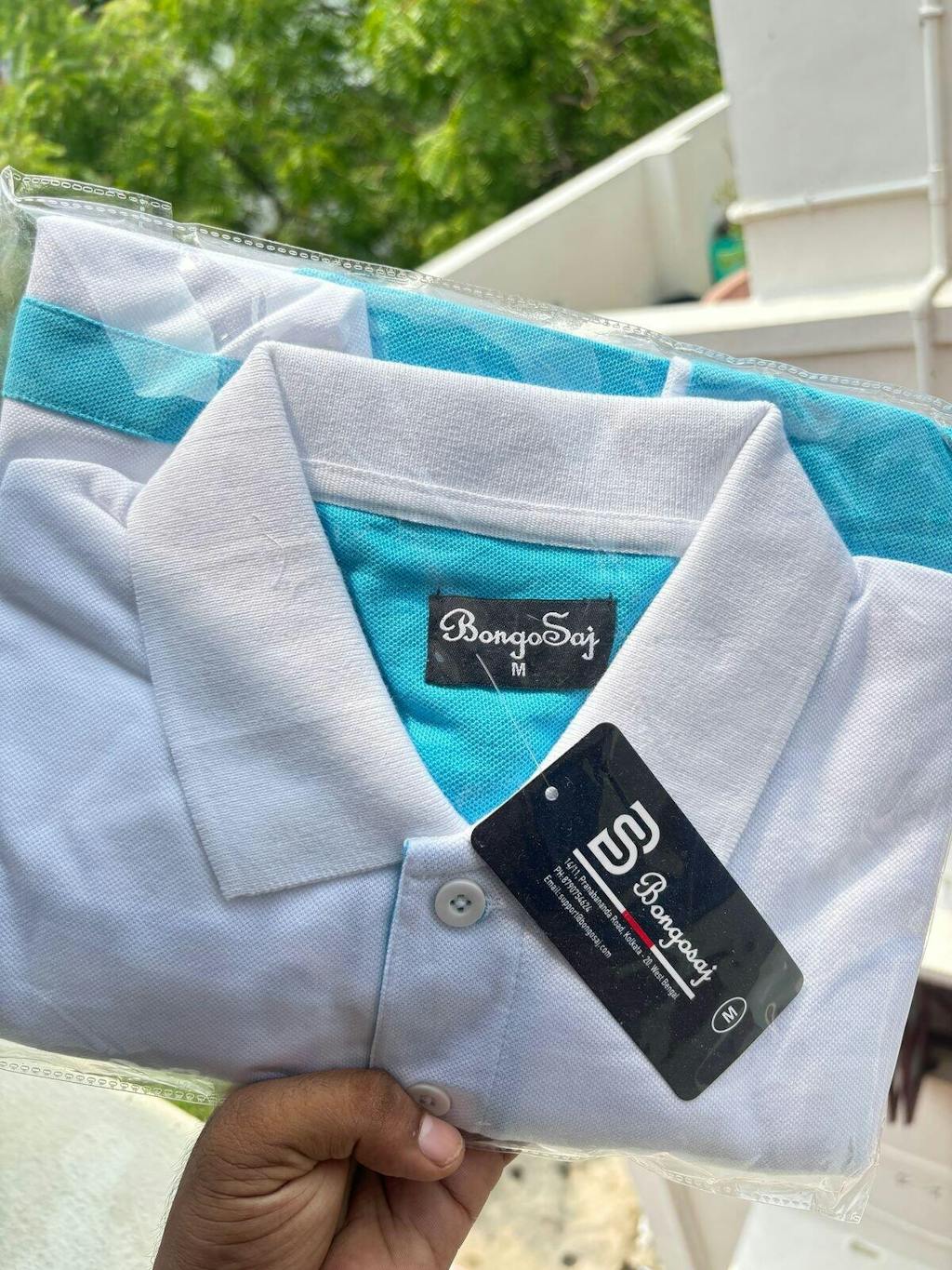 White & Sky Blue 3-Stripe Polo T-Shirt - New Collection
